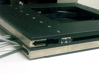 中空雙軸stage,線性馬達驅動,光學尺回授,無背隙,便於控制器做精度補償,高度低,重量輕,慣性小,高速運動中對機台反作用力小,有效降低機台震動。 中空設計便於下CCD或下光源安裝,適用於24/7的應用。